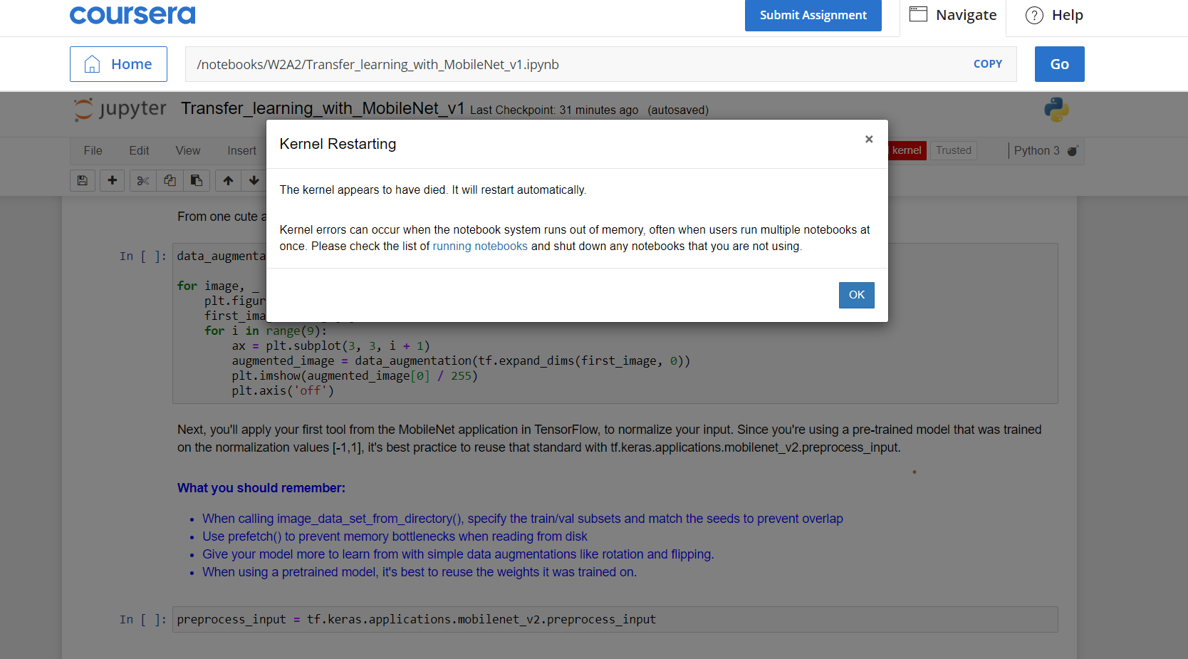 I’m getting kernel error during cell 7 execution that is “data_augmentation = data_augmenter()” because of this I’m not able to proceed further. Plz look into the problem.