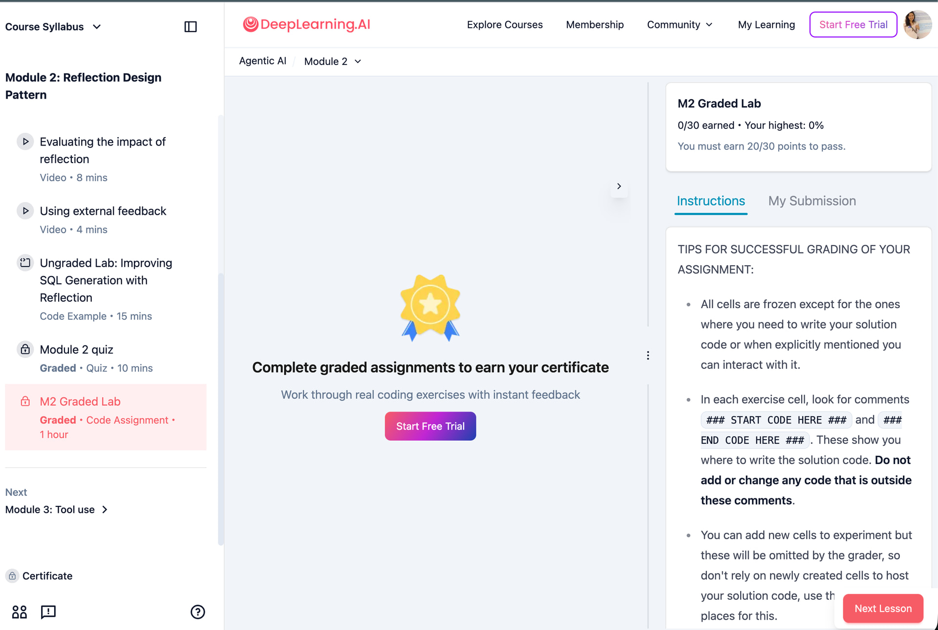 I was working on a short course and wanted the Accomplishment, so I upgraded to the 7-Day trial.