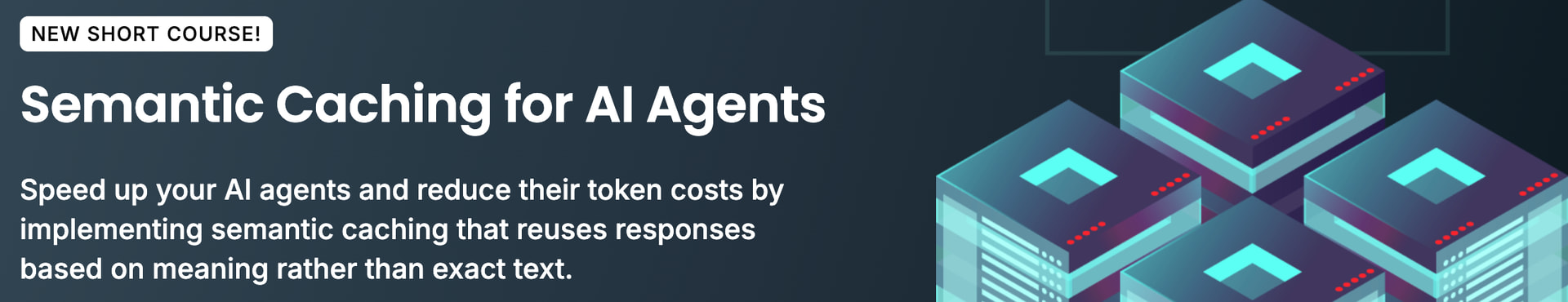 Join our new short course, Semantic Caching for AI Agents! Learn from Tyler Hutcherson, Applied AI Engineering Lead, and Iliya Zhechev, Senior Research Engineer at Redis.