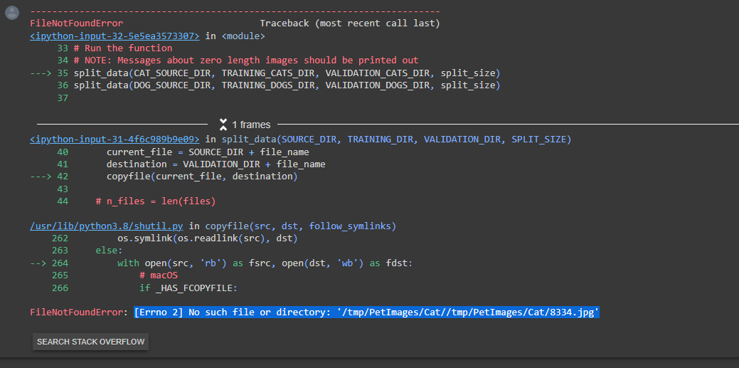 In google collab : [Errno 2] No such file or directory: ‘/tmp/PetImages/Cat//tmp/PetImages/Cat/8334.jpg’