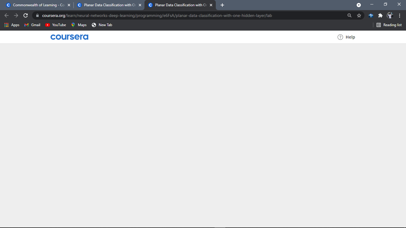 The page appeared blank, only the Coursera heading and the help button showed.