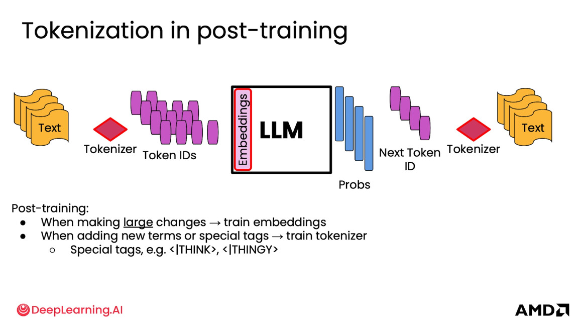 I got confused about the statement “train tokenizer” in the context of post training. Is that really a thing? Wouldn’t that alter existing token IDs and thus make the existing embeddings unusable? I know that it’s always possible to manually add new tokens to a tokenizer / LLM, but the term “training” confuses me. If it refers to a specific technique, I would appreciate if you could provide a brief reference. Thank you!